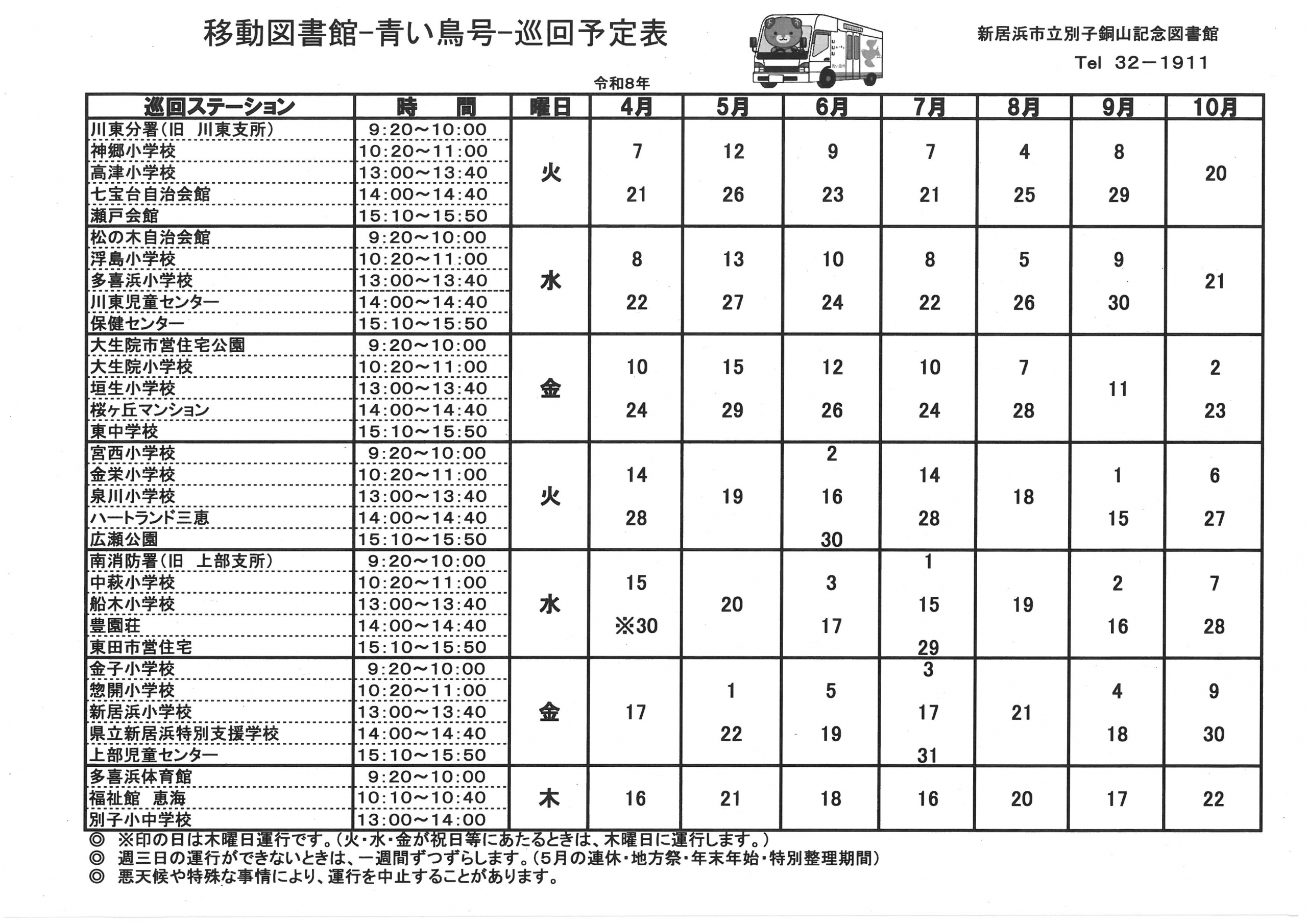 月曜日、館内整理日(毎月月末)、年末年始、特別整理期間