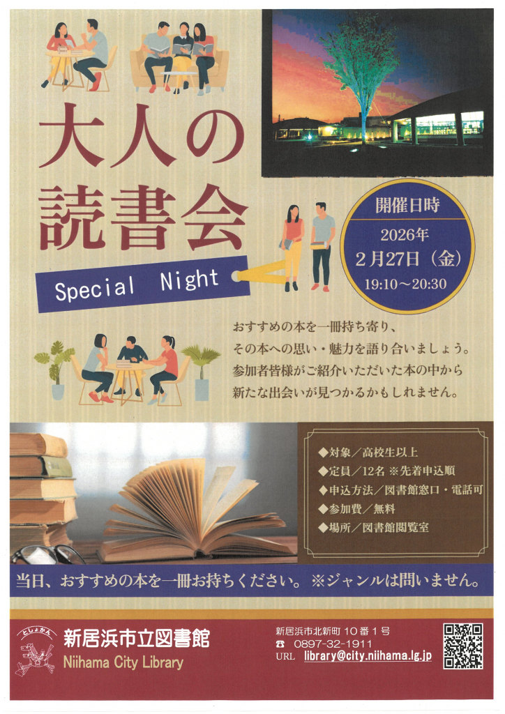 内容:閉館後の図書館で、おすすめの本を一冊持ち寄り、その本への想い・魅力を語り合います。