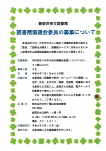 させるため、新居浜市立図書館協議会の委員を募集します。